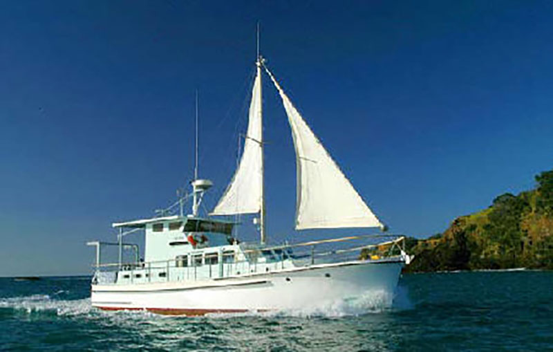 | Private trip organised directly with: Ocean Blue Adventures -- https://www.oceanblue.co.nz/ Diving from the MV Mazurka (meaning dance on the water), heading out to the Poor Knights Islands from Tutukaka Marina. Mazurka has a length of 14 metres (45 feet), a beam of 4.3 metres (14 feet), and a cruising speed of 8 knots. She is a steel launch with comfortable accommodation for six guests, a spacious saloon and a well-equipped galley. I took a 3-day liveaboard trip, completing six dives. The passengers aboard were a couple from Ireland diving as a buddy pair, plus a Divemaster up from Auckland diving with a lady who had just passed her Open Water course the weekend prior, and me. The crew consisted of Kevin Delonge, the boat owner, and Jef, who served as the divemaster and chef. |