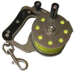 In July 2010, I purchased a right-handed 90 mm Diameter Stainless Steel Narrow Spool Ratchet Diving Reel (# 47) with 40 metres (130 feet) of yellow nylon line on a 90 mm diameter narrow spool from Kent Tooling & Components, in Kent, UK.