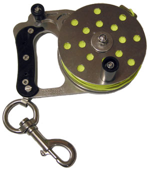 In July 2010 I also purchased a right-handed 120 mm Diameter Stainless Steel Narrow Spool Ratchet Diving Reel (# 381) with 75 metres (245 feet) of yellow nylon line from Kent Tooling & Components, in Kent, UK.