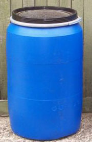 A couple of 200 litre plastic drums with removable lids are used for cleaning the gear after a dive.