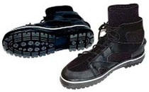 3mm neoprene stretchy sock design contours to all shapes and sizes . Lace-up overshoe provides firm ankle and foot support, and reduces accummulation of water in boot. Reinforced toe cap. Extra heavy non-slip sole is ideal for "rock hops".