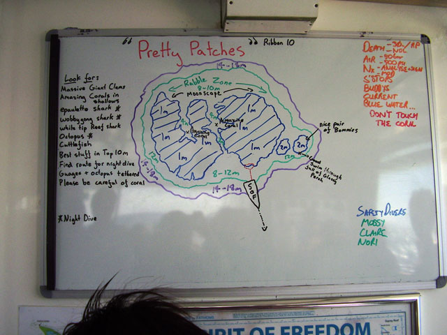 | Boat: Spirit of Freedom, TUSA Cairns Dive Director: Mossy, TUSA Cairns The pool was declared open and we took in another excellent briefing from Mossy. Then we headed out to explore Pretty Patch and get familiar with the dive site before the night dive to come later. Once back on board, Andrew had dinner waiting. |