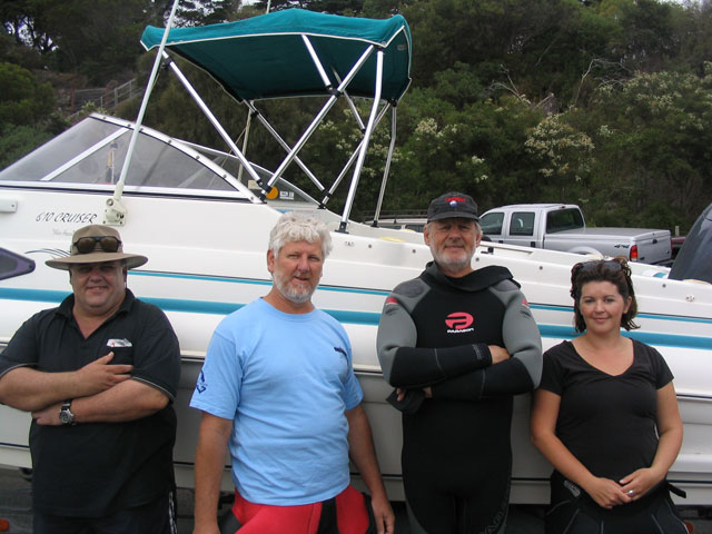 | Divemaster: John Lawler, VSAG Boat: Mick Jeacle's Haynes Hunter 540 SC Explorer, Sorrento First dive with VSAG for 2007. Stopped by The Scuba Doctor on the way down and got a new pair of Northern Diver 2mm superstretch neoprene gloves. I arrived at Sorrento to find John Lawler already there with his boat, plus Alan Storen and some of the others. I started to unload my gear from the car and get into my wet suit. Peter Briggs showed up with his boat, shortly followed by Mick Jeacle with his boat. I was assigned to Mick's boat and we started to load the gear. Once all three boats were launched, we headed out to the J4 Submarine. There was a lot of activity on the bay but no-one else out at the J4 Sub. Mick Jeacle positioned us over the J4 and Alan put in the shot line. Then Alan, Cathy and myself geared up. (I must remember not to add the BC weights until after I get my BC on when using my 15 litre steel cylinder.) We went in and followed the shot line onto the bow of the submarine. We proceeded back to the break and went into the forward section to see the torpedo tubes. Then we entered the main body of the submarine and swam through to the rear bulkhead. There was a bit of surge happening, which made it fun. As we were passing the hole at the rear of the conning tower, Cathy was spat out the top by the surge. Being slightly ahead of her, I managed to make it across and join Alan at the bulkhead. Alan and I then exited via the hole. The three of us proceeded back towards the bow down the port side. There was a large school of silvery coloured fish hanging around to the port of the conning tower. Some very large ones in amongst many smaller ones, possible juveniles. They totally ignored us, let us stop and look, and swim past without moving from their station. We stopped to check out the plaque at the base of the conning tower. I signalled to Alan that I was at 100 bar and shortly afterwards we started our ascent, stopping for a one minute safety stop at 10 metres, followed by a longer one at 5 metres. There was something simply marvelous about this dive that is hard to explain. Simply delightful. Once the three of us were back aboard, Mick Jeacle went in, buddy up with Mike Kakafikas from Peter's boat. While we were waiting for them, a Dive Victoria boat arrived on the site and looked like it was going to shot the sub with our two divers in the water. So we headed over and Alan Storen let them know that we had two divers in that were due up in about 5 to 10 minutes. They moved away and waited until we had recovered our divers. It was obvious conditions at the Rip were going to be a bit trickier than they were as we came out. So Peter Briggs transferred some of the cylinders on his boat to the larger boats before we headed back through the Rip. There was a lot of shipping activity and we ended up following one of the Pilot boats in through the Rip. Once we were positioned off of Point Lonsdale we all stopped for lunch. |